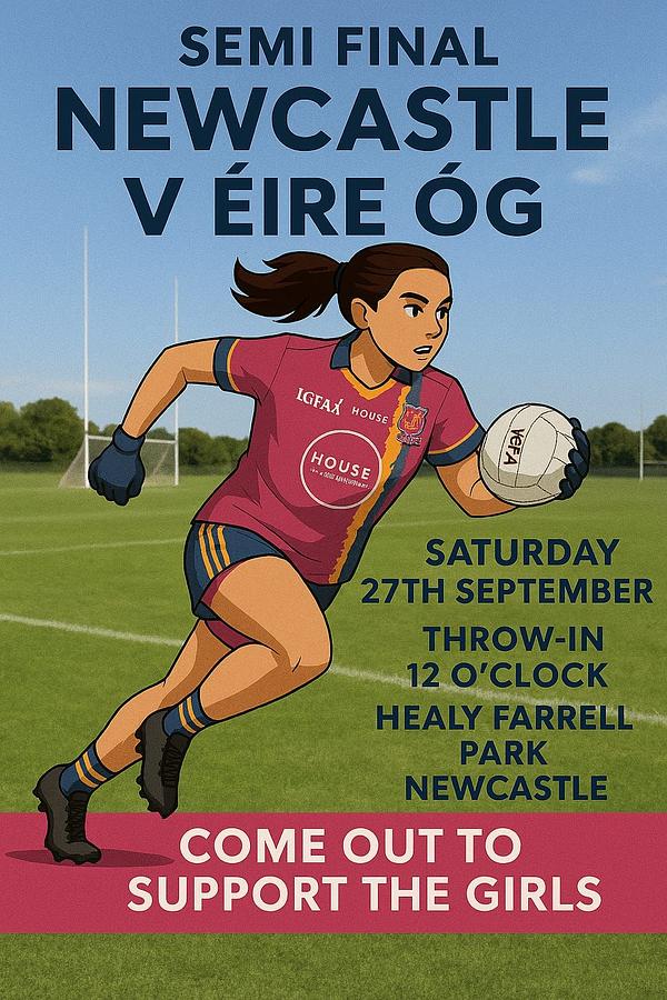 In what is a very exciting weekend for Newcastle gaa first up is our under 14's girls who face off against a very formidable greystones side in there semi final tomorrow .